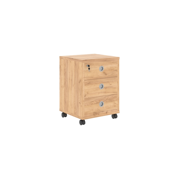 Тумба комплектуется центральным замком на 3 ящика и колесными опорами.