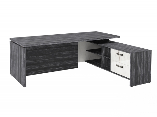 Столешница, бок стола и бок тумбы выполнены из ЛДСП толщиной 38 мм. Цвет - "Древесина Графит". Кромка 2 мм.