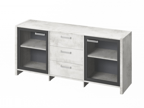 Тумба с 2 дверями в алюминиевом профиле и 3 ящиками.